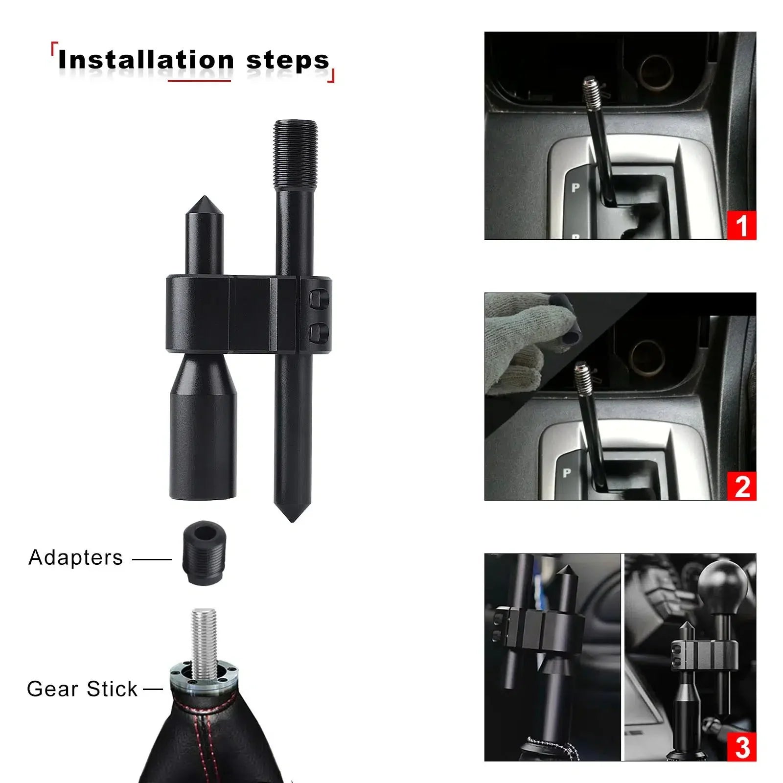 The adjustable lever height allows for personalized customization, ensuring optimal comfort and control while driving. With three adapters included (8MM, 10MM, 12MM), this extension is compatible with a wide range of car models for added convenience.